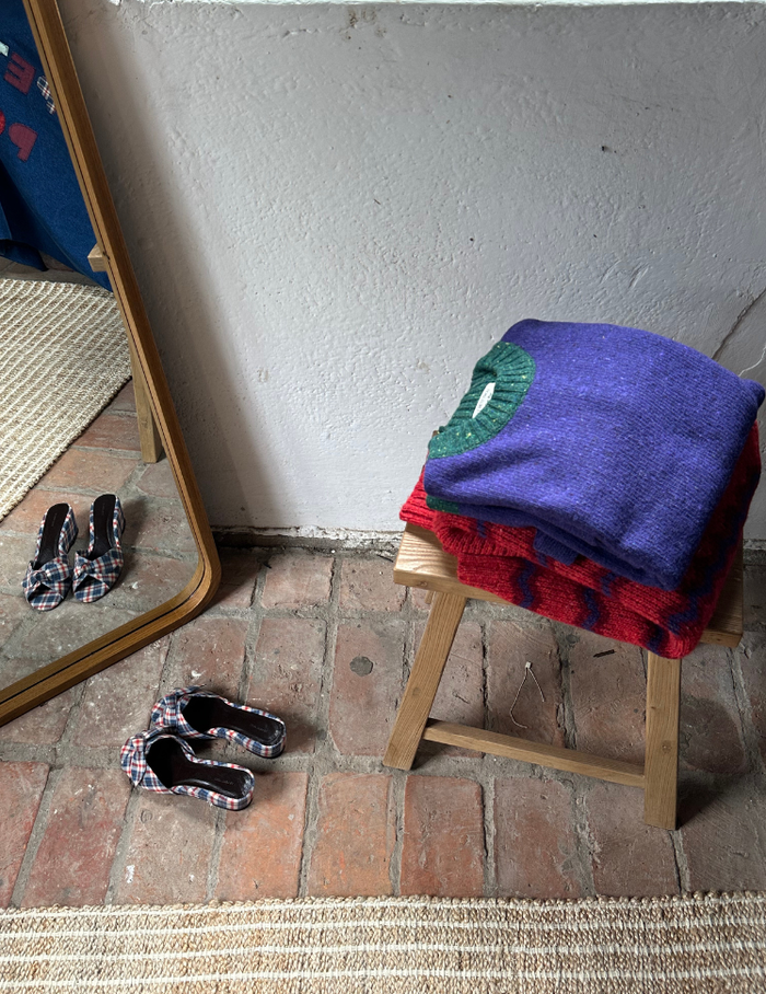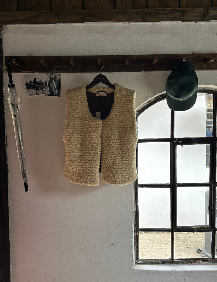Among the highlights were new arrivals soon to be released: a cream vest and a cozy sweater — perfect for slow mornings and long countryside walks.
